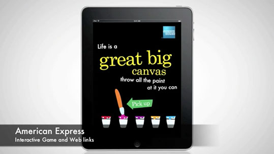 Amex: interactive game. Pick up brush choose paint, flick paint on screen