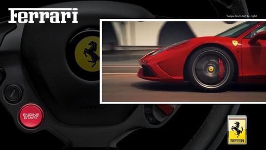 Ferrari (regional): start up audio of engine and move car by swiping screen